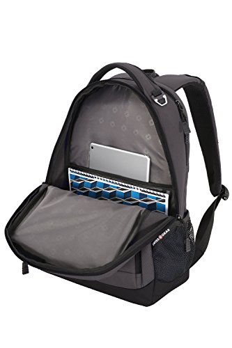 Product DescriptionSwissGear laptop and tablet backpack in black with grey accents0