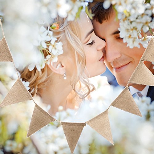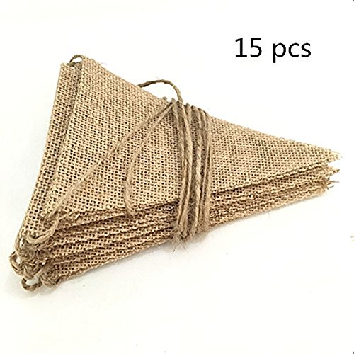 -. Feature : Package with 15pcs burlap banners stringed by jute rope, each flag is 7" H x 5.2" W / You can use paint, fabric or cardboard to DIY any message / Fit for kids party, wedding, birthday, New Year, Christmas, baby shower, country party or other ceremonial occasions