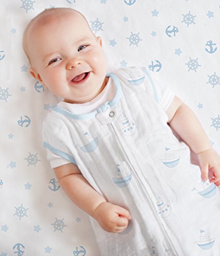-. Title : SwaddleDesigns Cotton Muslin Crib Sheet, Pastel Blue Little Ships
