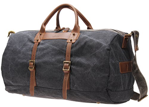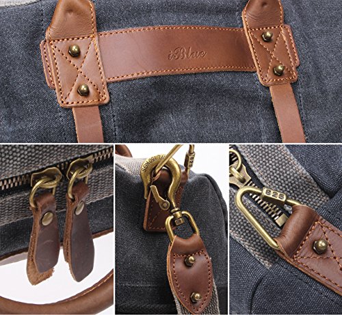 - Brand: Iblue - Material: Thick Heavy Duty And Exquisite Canvas Cow Leather - Closure Type: Thick Large Zipper - Shape: Cylindrical Bag - Color : Grey - Weight : 1.6kg - Style: Duffle Bag,Gym Totes,Travel Bag