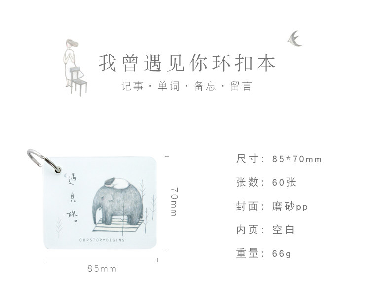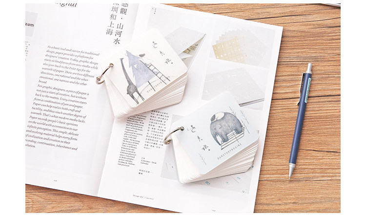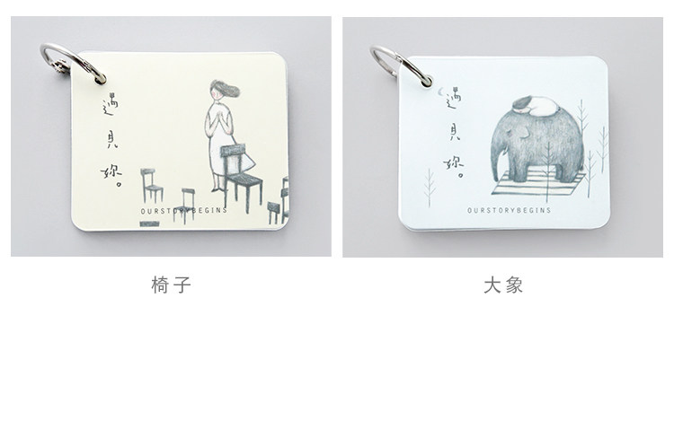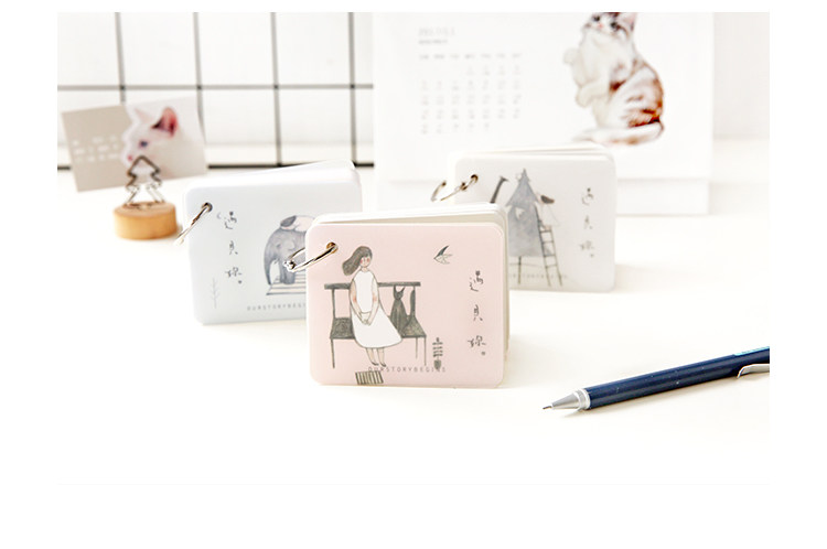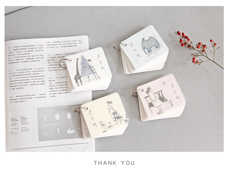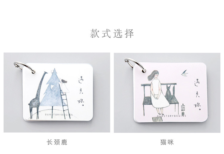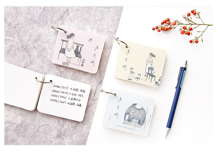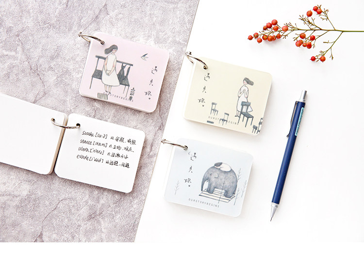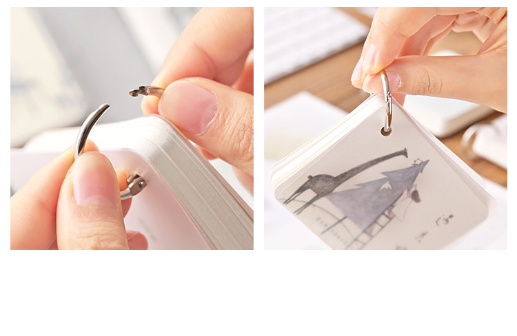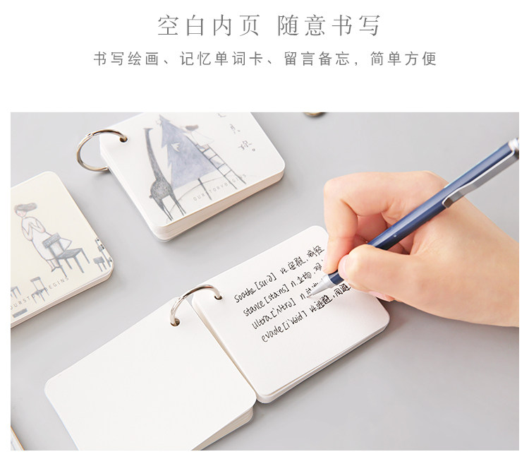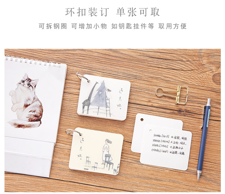 创意空白记忆卡 小清新插画可拆环扣本单词卡记事留言备忘卡