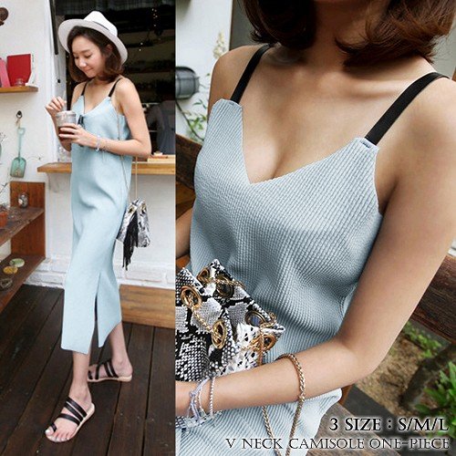 -. Title : 新品 スリット キャミ ワンピ Vネック スカート ロング マキシ丈