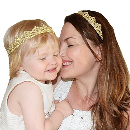 Miugle Baby and Mother Gold Crown Headbands Set
