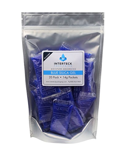 20 Pack of 14gm Blue to Pink Indicating Silica Gel Packets Desiccants [3.15" x 1.5"] - RECHARGEABLE by Listing Instructions