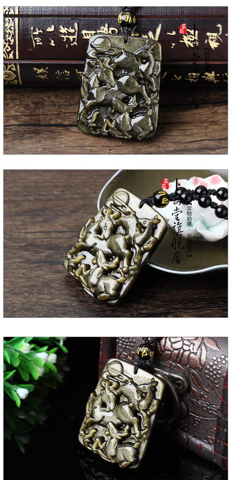开光天然金曜石三羊献瑞赐瑞吊坠羊名利万吊坠