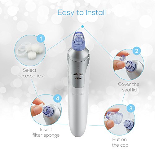 - Four Suction Levels For All Types of Skins: Vacuum physical suction design from level1 to level4 suction force. The lowest suction is suitable for sensitive skin, it will improve the surface blackhead; 2-3 suction levels are suitable for neutral skin, it will improve deep blackhead; 4 suction level it suitable for mixed and oily skin, it will improve stubborn blackhead Note:Please try to use it on your hands to know the suitable suction before using on your face.