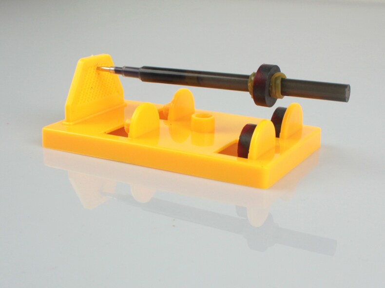 原理:对笔杆上的磁铁进行受力分析,向下的重力、向外的笔杆支撑力【很小】和斜向上的磁场斥力,三力平衡。