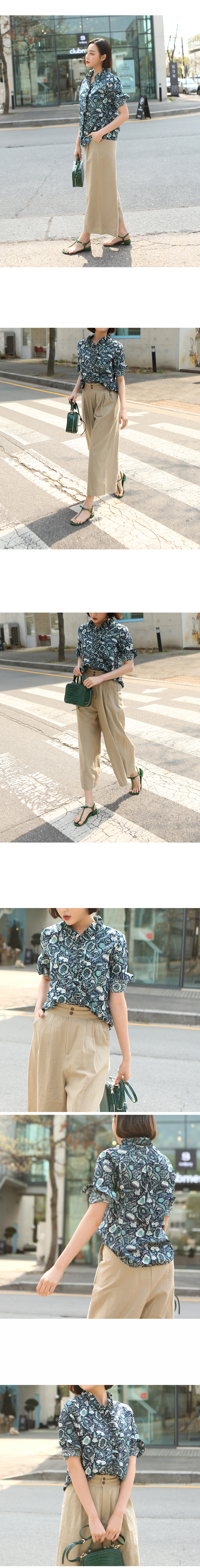 독특한 기하학 패턴의 멋스러운 색감이 먼저 눈에 띄는 세련된 디자인의 코튼 블라우스에요
