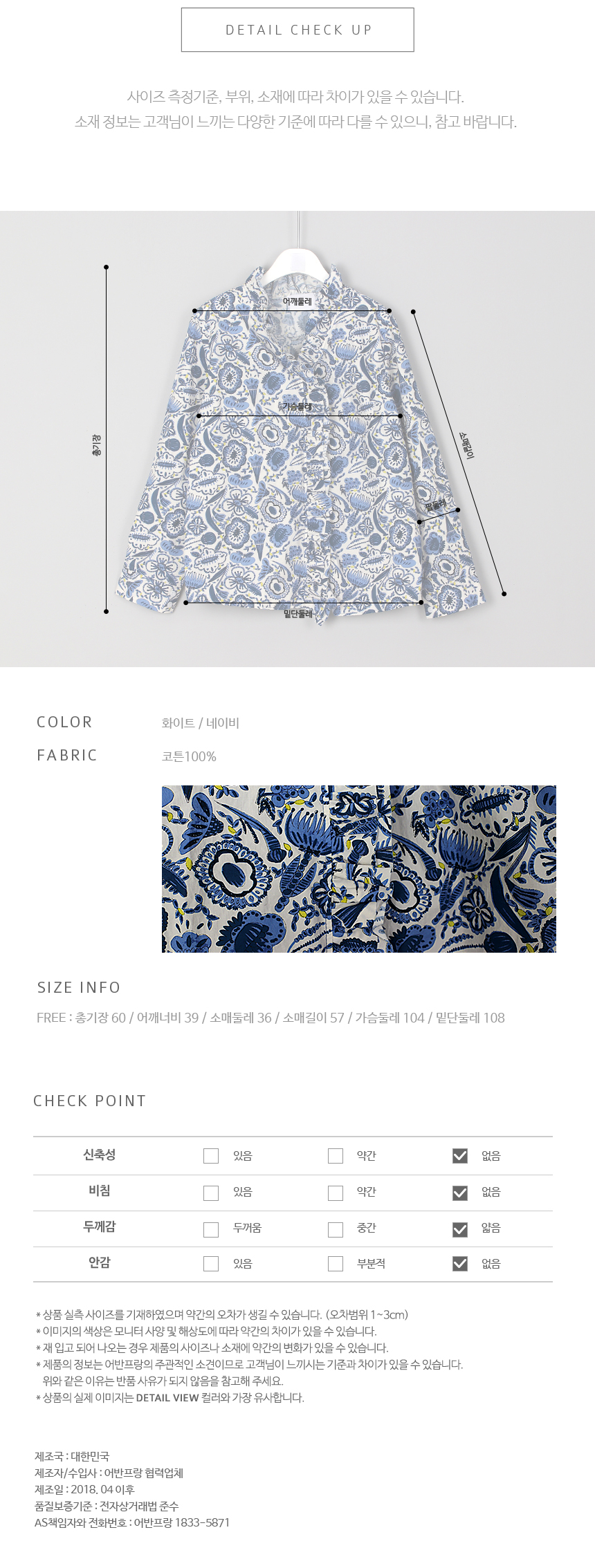 색상은 화이트, 네이비 사이즈는 FREE 44~66반