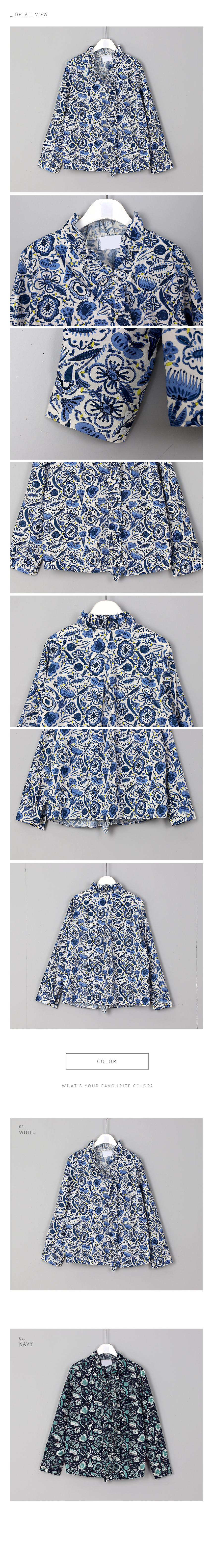 브이넥 목선은 프릴을 잡아 얼굴을 돋보여주고 단추로 클로징하는 앞라인까지 프릴을 연결해주었어요