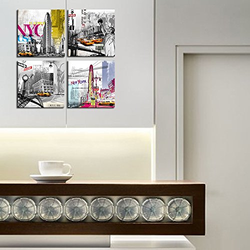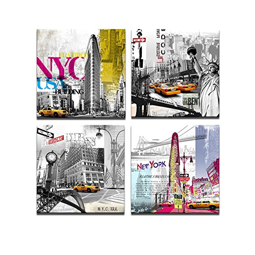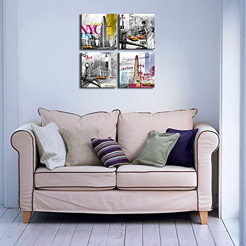 -. Title : New York Canvas P.R.Ints ,Modern Paintings, American Impression Famous Architecture in the USA Wall Decor Canvas P.R.Ints, 12x12inchesx4 Canvas Wall Art