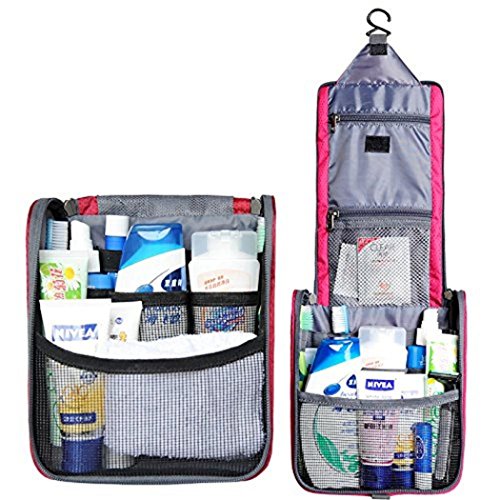Wonzone Portable Foldable Lightweight Moisture-proof Anti-tear Fabric Zipper Travel Bag Travel Toiletry Kit Cosmetics Bag Shaving Bag Big Capacity for Women or Men with Hanging