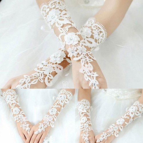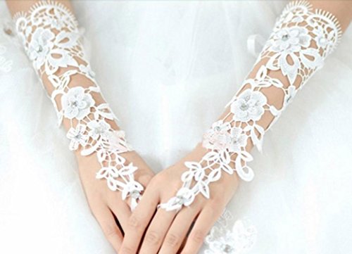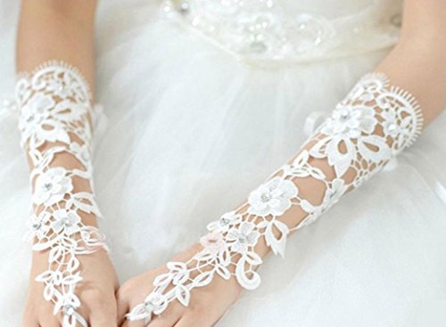 (Voberry)/Accessories/Cold Weather Accessories/DIRECT FROM USA/Voberry Lace Beaded Bridal Gloves Fingerless Pearl For Wedding Bride Gloves
