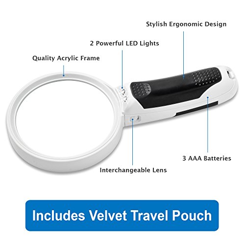 Fancii LED 5X Handheld Magnifier Set with Light - Large Detachable Lenses 3X 5X - Best Illuminated Magnifying Glass for Seniors Reading, Low Vision, Macular Degeneration, Craft and Hobby B013PY3DF6