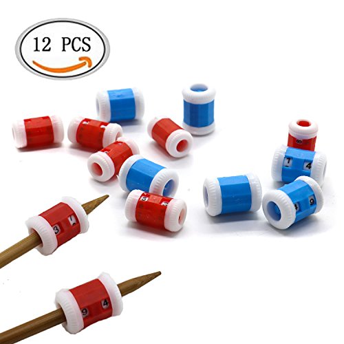 IDA 12 Pieces Per Pack Plastic Knit Counter Knitting Crochet Stitch Marker Row Counter - 6 Large Size and 6 Small Size - Blue and Red