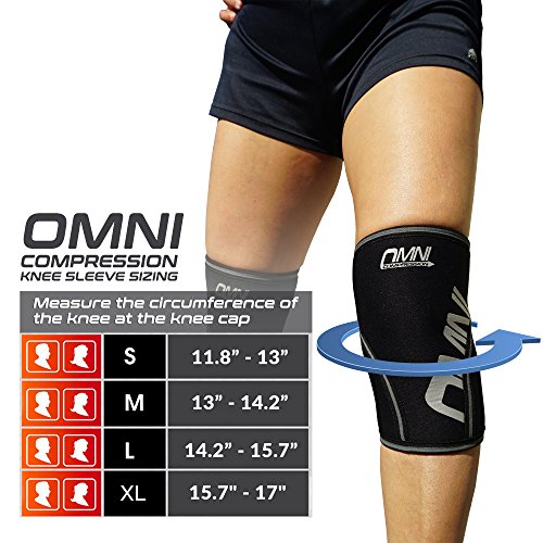 OmniCompression Fitness Knee Sleeves, Pair. 7mm Padded Neoprene, 15-20mmHg Strength Offers Strong Brace Support for Weightlifting, Powerlifting, and CrossFit Activities For Men and Women