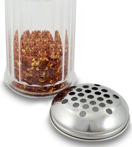 This cheese shaker cover made of stainless steel material. It is compatible with glass and plastic shakers. It has feature extra large holes. Comes with 12-ounce size.