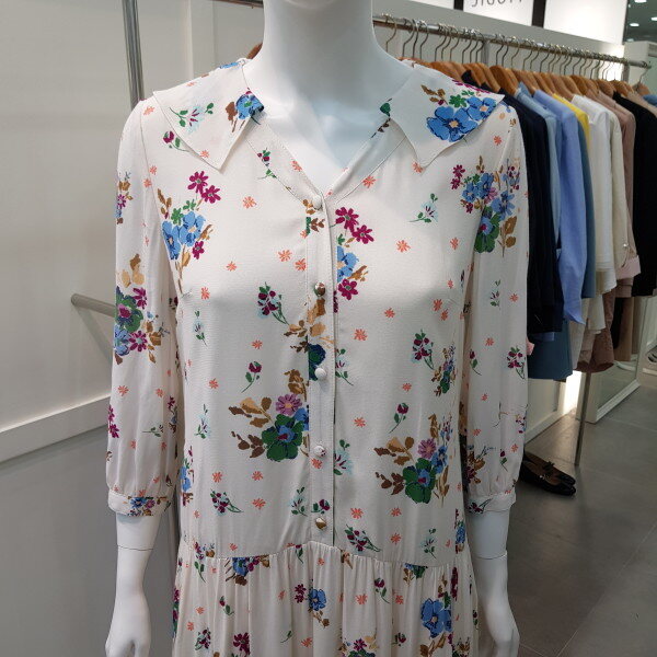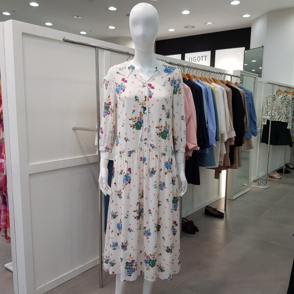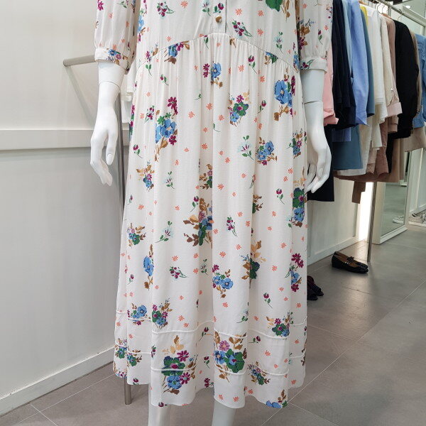 롱기장의 플라워 패턴 원피스로 편안하면서도 옵션 테슬 벨트로 포인트를 주는 스타일의 원피스
