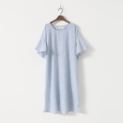 밝은 컬러감에 스트라이프 패턴의 원피스.