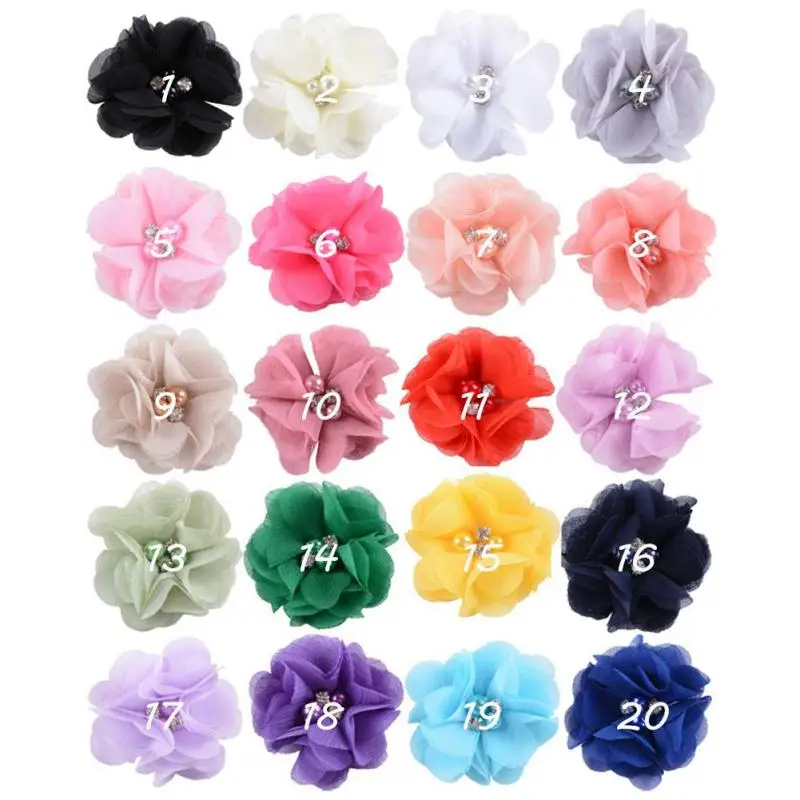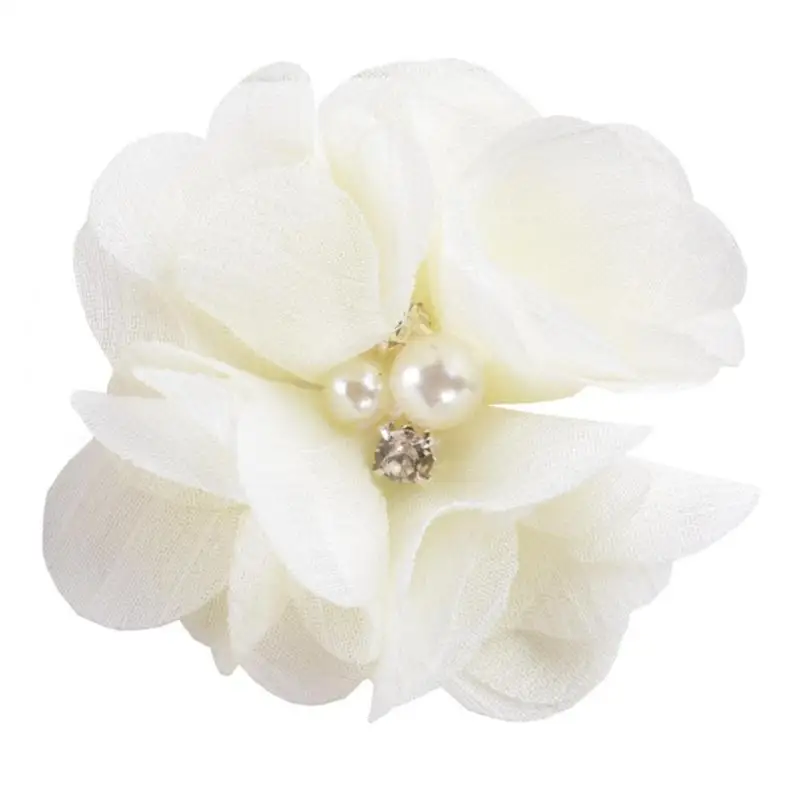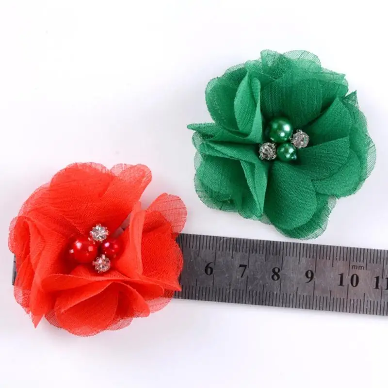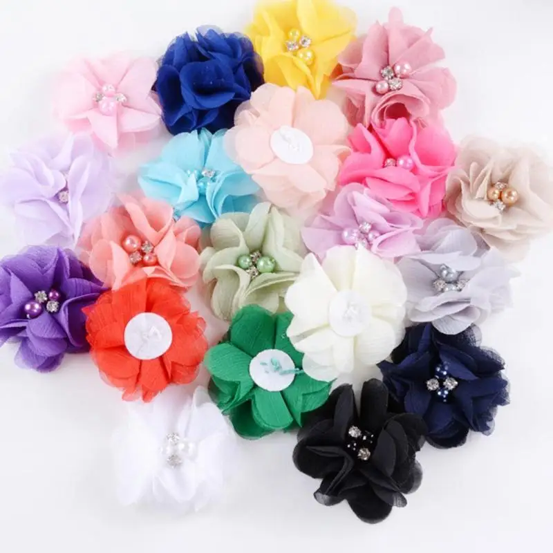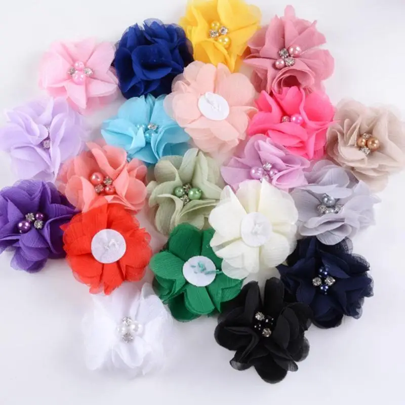 Features::5 cm hand sewn pearl diamond chiffon fabric flowers