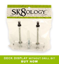 -. Brand : Sk8ology -. Color : Clear -. Department : mens -. Feature : Simple one screw/drywall anchor installation means your walls don't need multiple holes put in them to hang each board. / Treat your collectable skateboard decks like the artwork they are / 100% satisfaction or your money back. Guaranteed. / Official display of the Skateboarding Hall of Fame & The Smithsonian Institute / Features two types of installation options - locked or easy on/easy off depending on your individual situation. -. IsMemorabilia : 0 -. Label : Sk8ology -. Manufacturer : Sk8ology -. MPN : SK8DB -. PackageQuantity : 1 -. PartNumber : SK8DB -. ProductGroup : Sports -. ProductTypeName : OUTDOOR_RECREATION_PRODUCT -. Publisher : Sk8ology -. Size : One Size -. SKU : 5RSKO0RACKSIN00_s -. Studio : Sk8ology -. Title : Skateboard Deck Display
