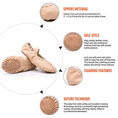 | CIOR Girls Leather Ballet Shoes Slippers,Split Sole Flats for (Toddler/Little Kid/Big Kid/Women) |