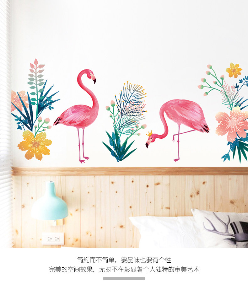 个性文艺火烈鸟墙纸自粘贴画创意卧室床头温馨墙贴墙上装饰品贴画