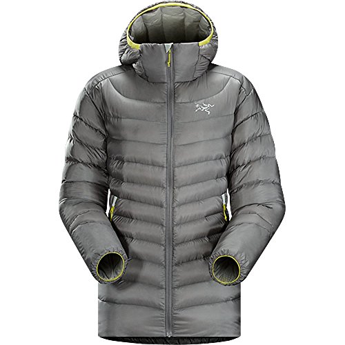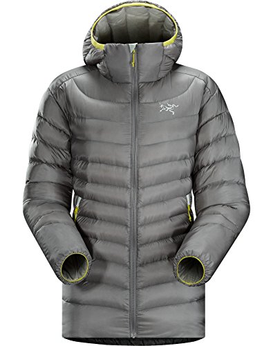 FEATURES of the Arcteryx Women's Cerium LT Hoody Down Composite Mapping strategically places both down and synthetic insulation inside jacket Lightweight yet durable face fabric with DWR finish repels moisture Low profile down insulated StormHood with hood adjuster Two zippered hand pockets, stuff sack included in pocket Low profile, elasticized cuff layers easily Elasticized rear hem seals out drafts Packs down small into the included stuff sack SPECIFICATIONS of the Arcteryx Women's Cerium LT Hoody Weight: 8.9 oz / 255 g Fit: Trim, hip length Airetica - 100% Nylon 850 fill European goose down (86 g) (M) Coreloft 80 and 100 insulation (80 g /m2 and 100 g /m2) ARC'TERYX TRIM FIT: These trim fitting pieces share motion-friendly traits with the Arc'teryx Athletic Fit, but are patterned with lower volume for reduced bulk. Arc'teryx trim fit styles are sized for a base layer and a trim synthetic or down filled mid-layer. Check out the size guide to learn how to calculate your body measurements before selecting a size. This product can only be shipped within the United States. Please don't hate us.Feature