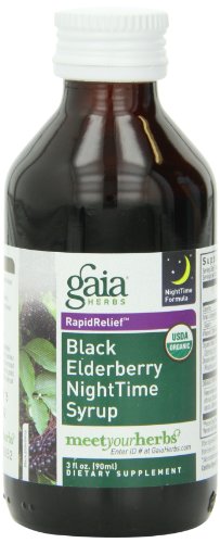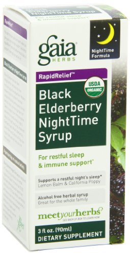 Gaia Herbs Black Elderberry NightTime Syrup, 3-Ounce Bottle