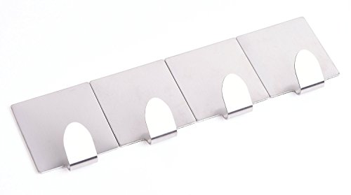 Home-organizer Tech Bathroom 3M Self Adhesive Hook Garage Storage Organizer Stick On Sticky Bathroom Kitchen Hanger Wall Mount Brushed Stainless Steel, 4 - Pieces