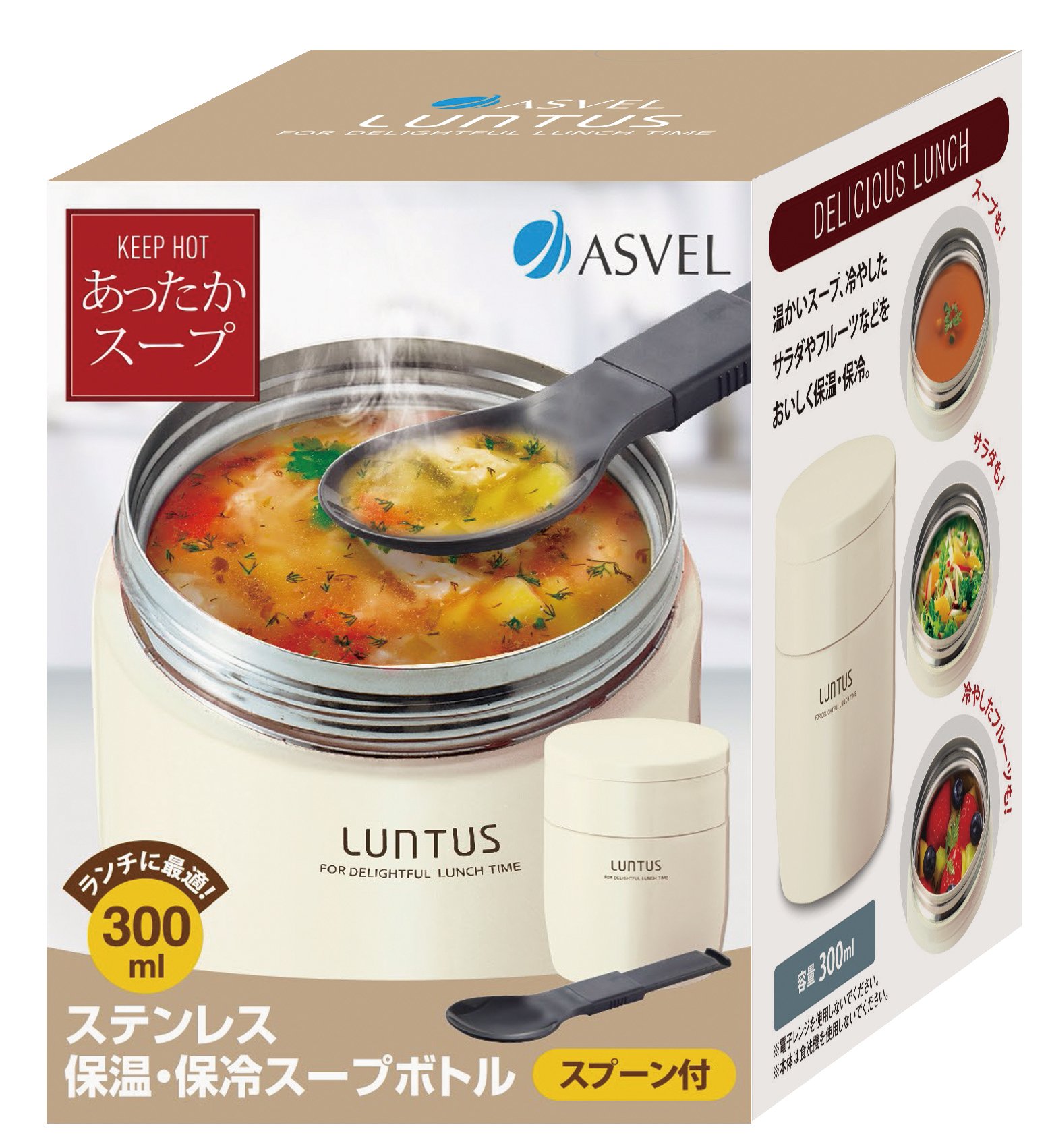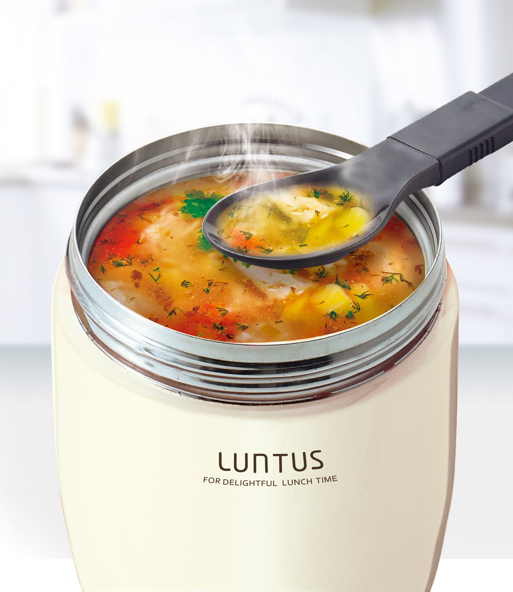 ● Soup bottle with charm with fulfilling functionality with spoon & air valve