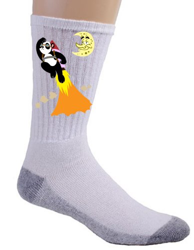 (BA)/Men/Socks/DIRECT FROM USA/Panda Going to the Moon Taking Off with Rocket Logo - Crew Socks