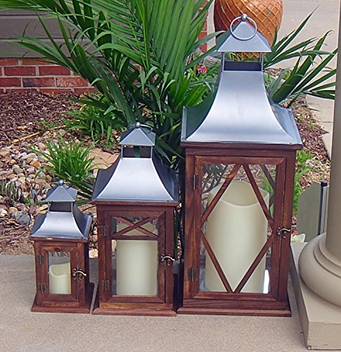 -. Feature : Set of 3 Indoor or Outdoor Lanterns / Large Lantern: 27" x 11" x 11" / Medium Lantern: 17" x 8" x 8" / Small Lantern :12" x 6" x 6" / Candles sold separately