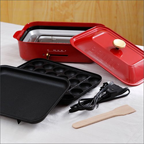 【콤팩트 핫 플레이트】■크기:폭37.5cm×(길이)깊이23.5cm×높이14cm ■재질 본체:스틸 phenolic 수지 플레이트:알루미늄 다이캐스트(안쪽 표면 불소 수지 코팅)■전원:AC100V ■정격소비전력:1200W ■기능 플레이트 교환식 온도 조절■안전장치써모스《닷토》 온도 퓨즈 마그넷 플러그■중량:약2.3kg(평면 플레이트,뚜껑 사용 시 타코야끼 플레이트 사용 시)■부속품:평면 플레이트 타코야끼 플레이트 뚜껑 목#등 마그넷식 착탈전원 코드■보증:1년간 보증