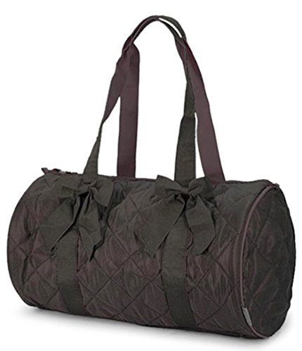 -. Brand : scarlettsbags -. Color : Brown -. Department : womens -. Feature : Size : 18w X 9.5h X 10d in. / Material : Quilted Microfiber / Zipper Closure / Ribbons are Detachable / Great for Overnight Stays or Gym Bag -. ProductGroup : Apparel -. ProductTypeName : LUGGAGE -. Size : 18w X 9.5h X 10d in. -. Title : Cute! Girls Brown Quilted Duffle Bag w/ Bows 18 Inches