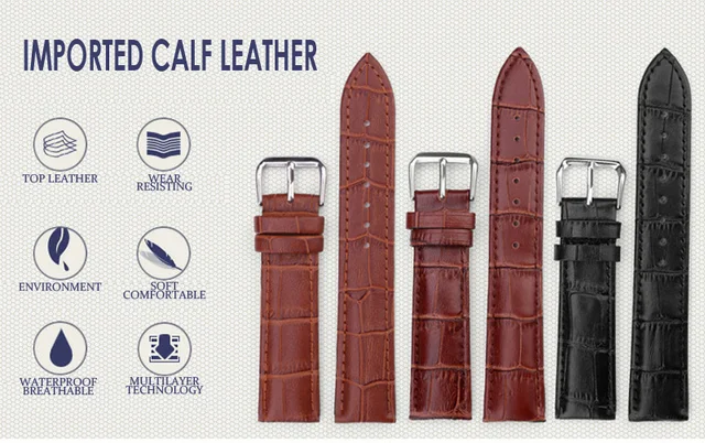 [해외] Ot02 새로운 제품 시계 블랙 브라운 팔찌 시계 스트랩 정품 가죽 밴드 시계 12 미리메터 16 미리메터 18 미리메터 20 미리메터 22 미리메터 24 미리메터 시계 액세스