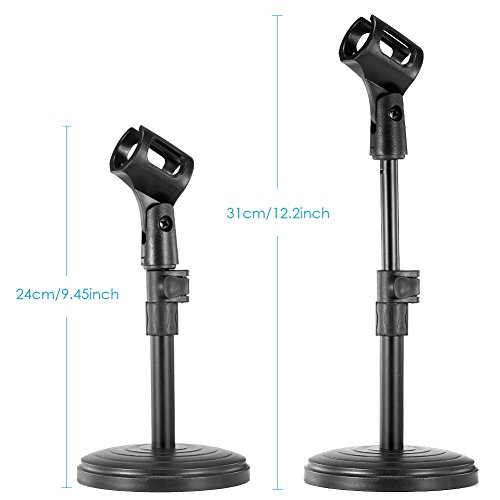 -. Binding : Electronics -. Brand : Neewer -. EAN : 0699618404753 -. Feature : 4-Pack NW-(PC-02) Black Iron Base Desktop Microphone Stands / Black iron base. Special designed for heavy duty carry / The included microphone clip is made of hard plastic to hold handheld microphone / Height Adjustable: 9.45"-12.2" / 24cm-31cm / Good for using at the conference room, church, the other public place -. IsAutographed : 0 -. IsMemorabilia : 0 -. Label : Neewer -. Manufacturer : Neewer -. Model : Neewer -. MPN : 90087607 -. PackageQuantity : 1 -. PartNumber : 90087607 -. ProductGroup : Musical Instruments -. ProductTypeName : SOUND_AND_RECORDING_EQUIPMENT -. Publisher : Neewer -. Studio : Neewer -. Title : Neewer® 4-Pack NW-(PC-02) Black Height Adjustable (9.45"-12.2" / 24cm-31cm) Iron Base Desktop Microphone Stands with Microphone Clip Holder -. UPC : 699618404753