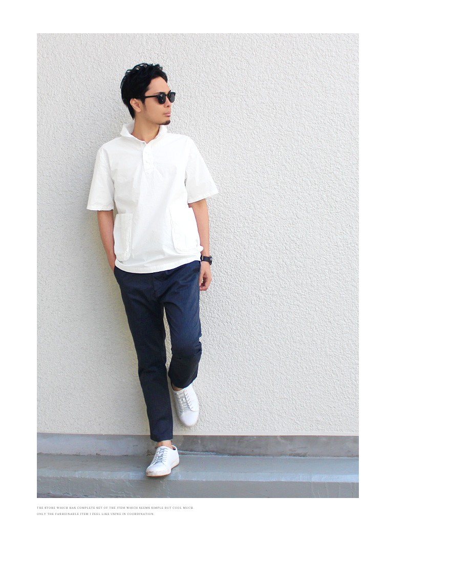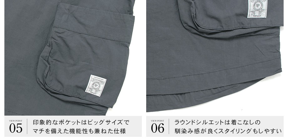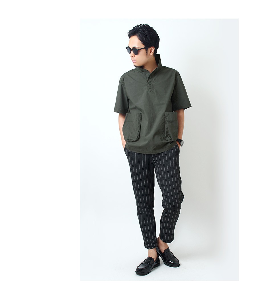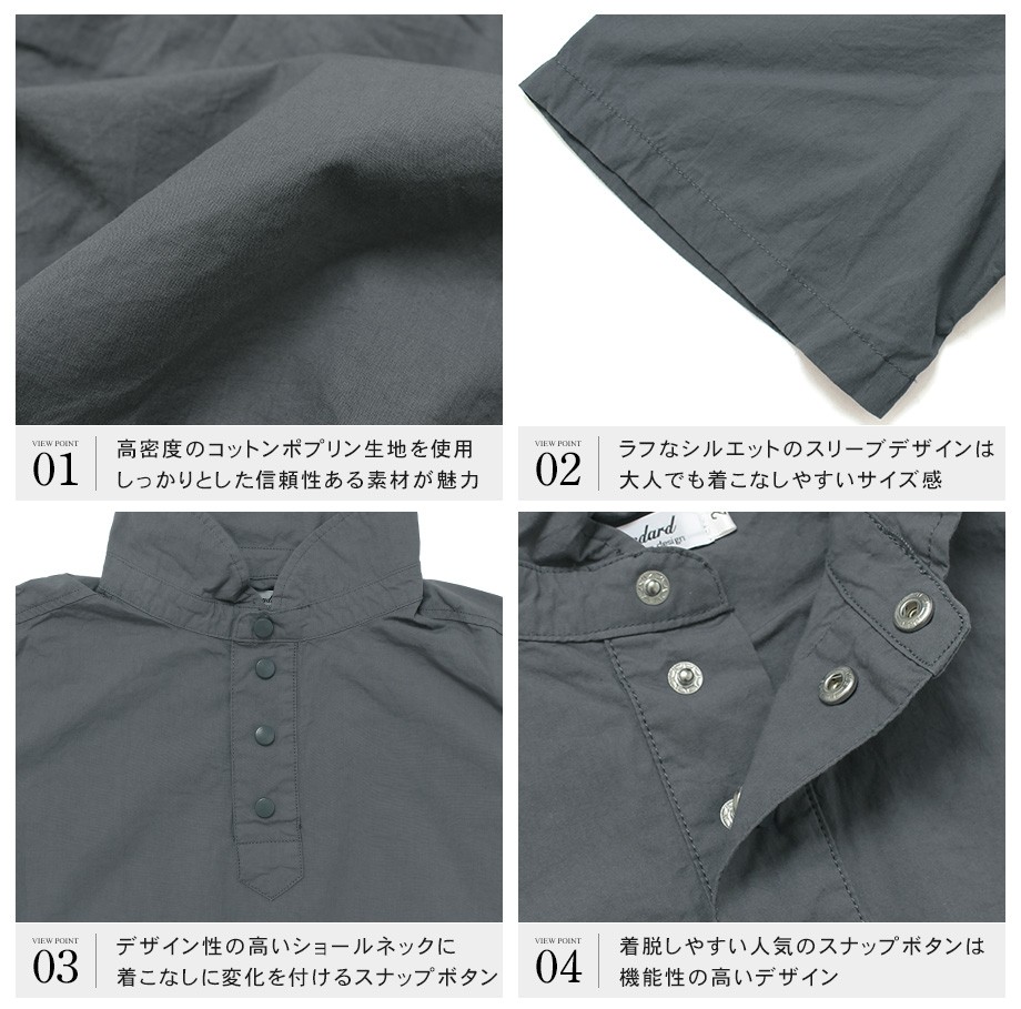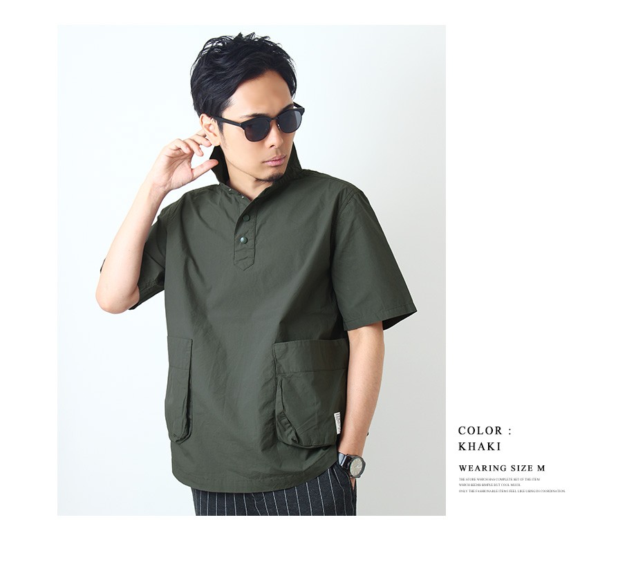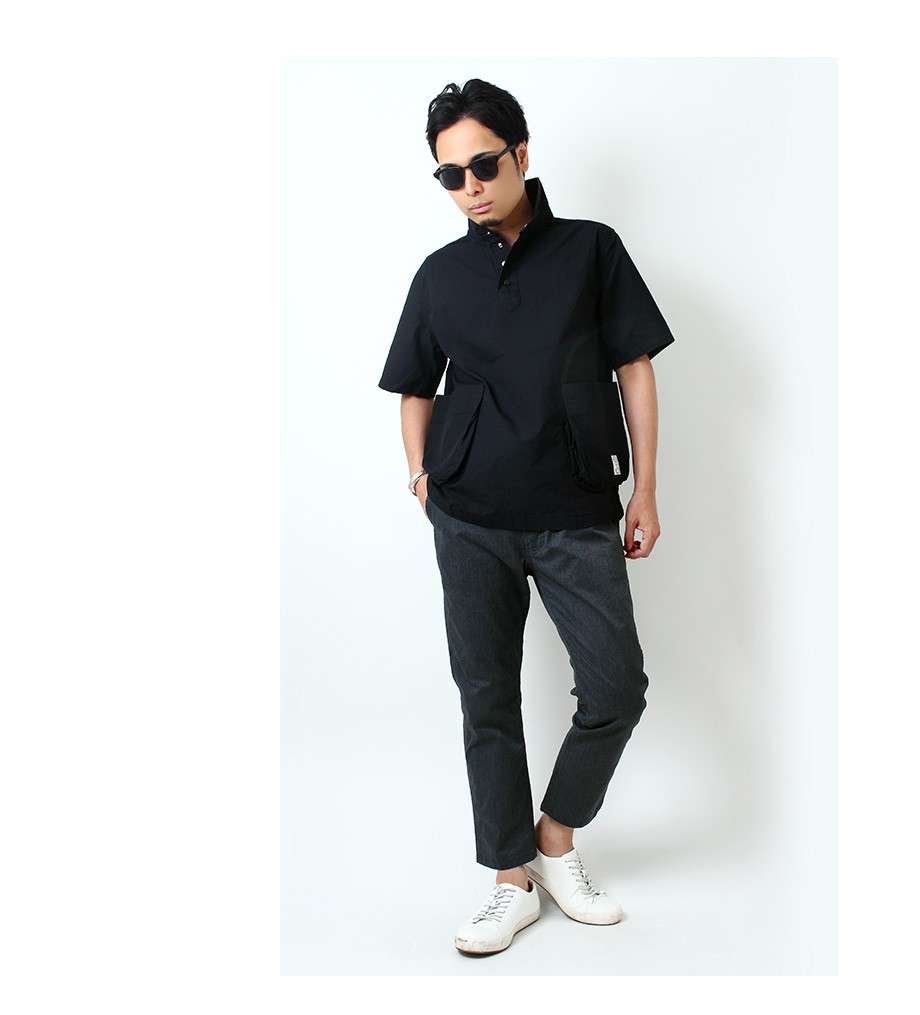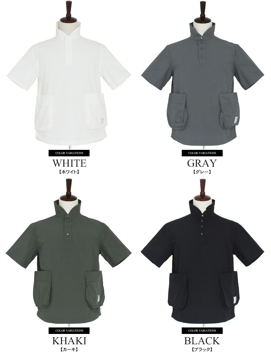 ポケットデザインが印象的なコットンポプリン半袖シャツ。デザイン性の高いショールカラーは立ち衿でも通常の着こなしも雰囲気良くスタイリングしていただけます。高密度のポプリン生地もしなやかな風合いながらタフな印象で価値ある仕上がり。大人の雰囲気を漂わせるデザインシャツです。