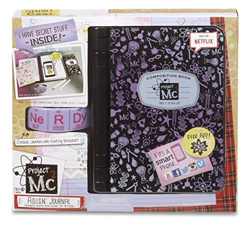 Project Mc2 is a team of four super-smart and seriously cool girls who use their love of science and their spy skills as they go on missions for secret organization, NOV8 (that's “innovate”!). They're real girls with real skills ready to take on anything. Now an original series, only on Netflix! Here’s your chance to interact directly with NOV8! Become a secret agent just like McKeyla McAlister, using your personal Advanced Digital Intelligence Spy Notebook -- A.D.I.S.N. for short. Picking up S.T.E.A.M. with Science-Technology-Engineering-Art-Math: Do you have what it takes? Visit www.ProjectMc2.com to become an honorary member of NOV8 and "ladder up" through the organization through a series of fun Ops tests focusing on your STEM abilities. Maybe you've been using Science, Technology, Engineering and Math all along and you didn't even know it! Product features: - 2 recorded messages from NOV8 - Secret compartments - Fits a smart phone (not included) for quick and easy access to Netflix, YouTube's AwesomenessTV, and our very own Project Mc2 website and free app that is available in the App store (ask your parents first!) - Includes Project Mc2 “NeRDy” bracelet to unlock A.D.I.S.N., invisible ink pen, UV black light, booklet with fun activities, and sticker sheets - Journal has access button in case bracelet is misplaced - Requires (3) AA batteries (not included)