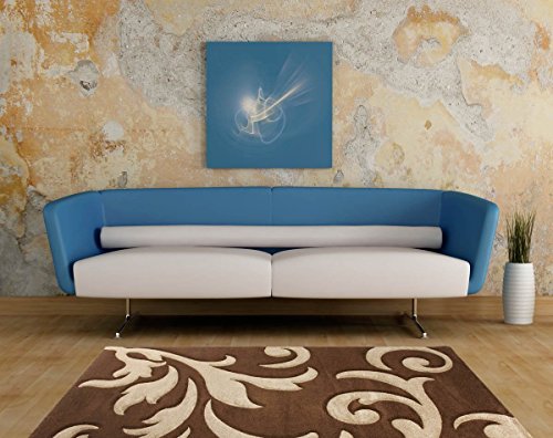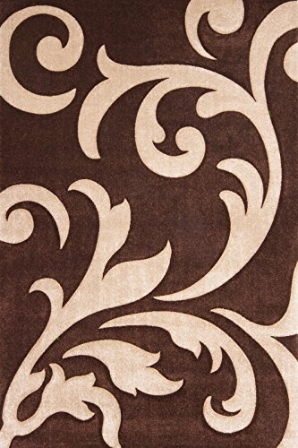 - Title : Maxy Home Hand Carved Luxury Durable Frieze Pile Floral Tribal 3'11" x 5'7" Area Rug Mocha Brown & Beige LAM451-MOC4X6