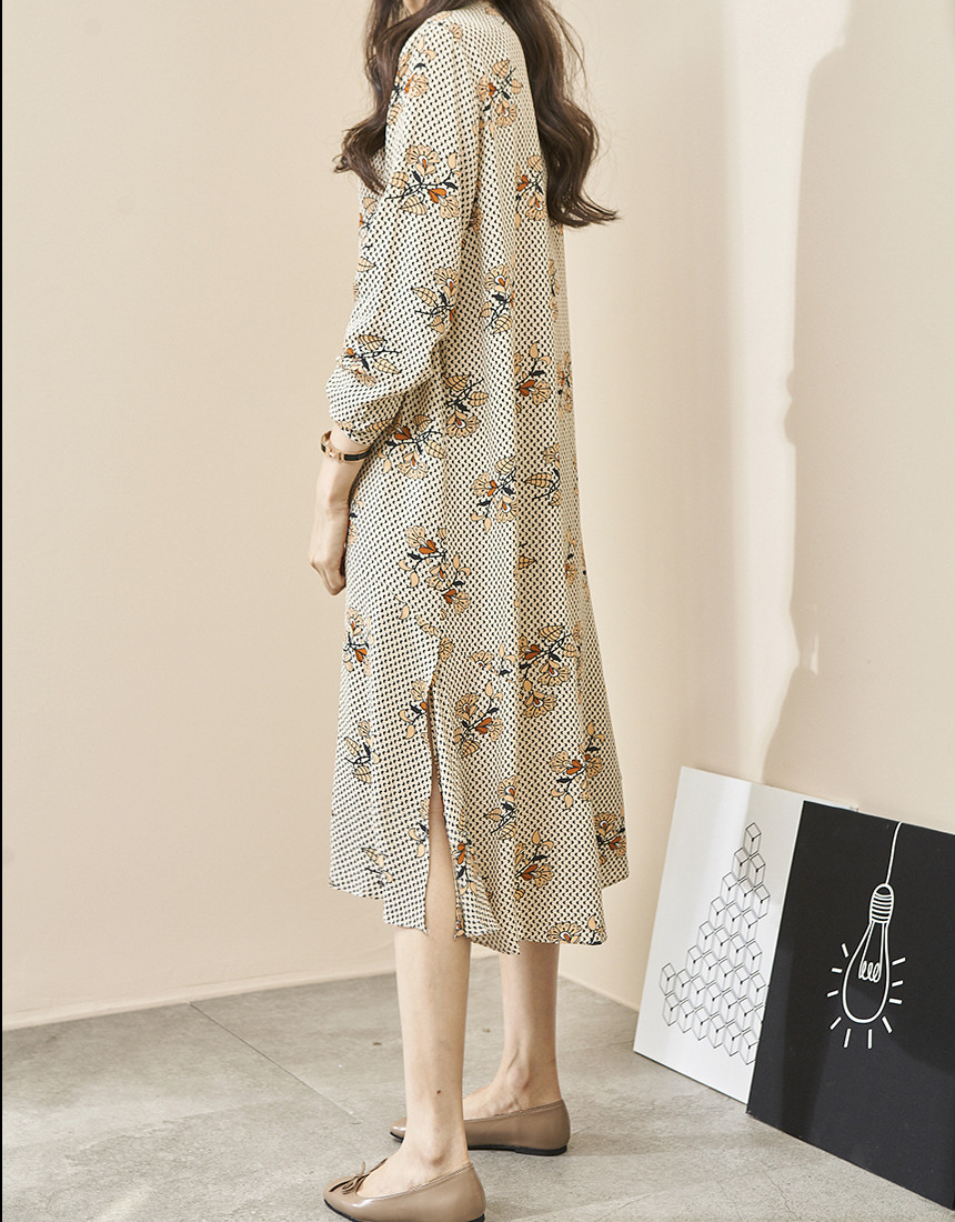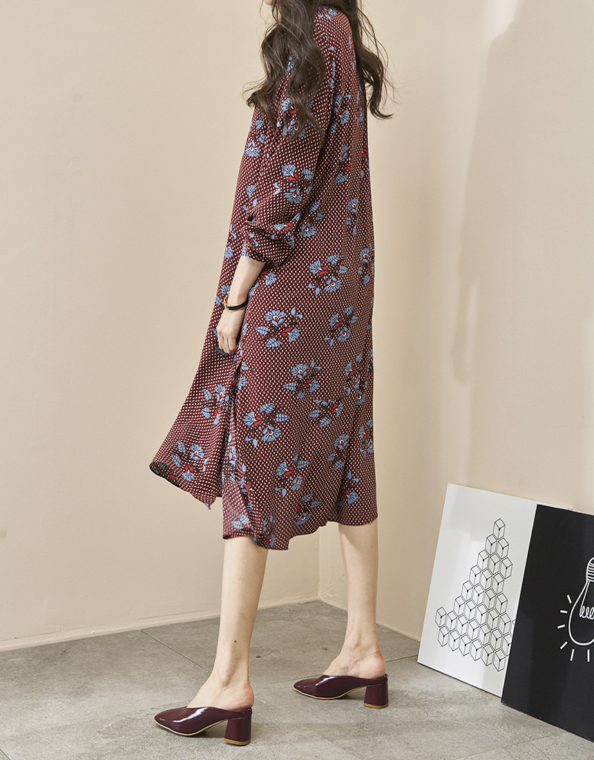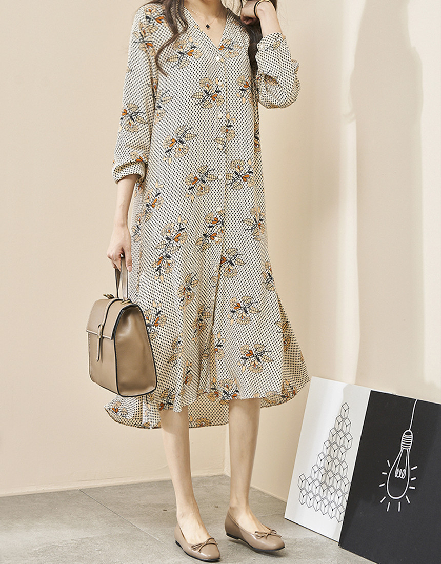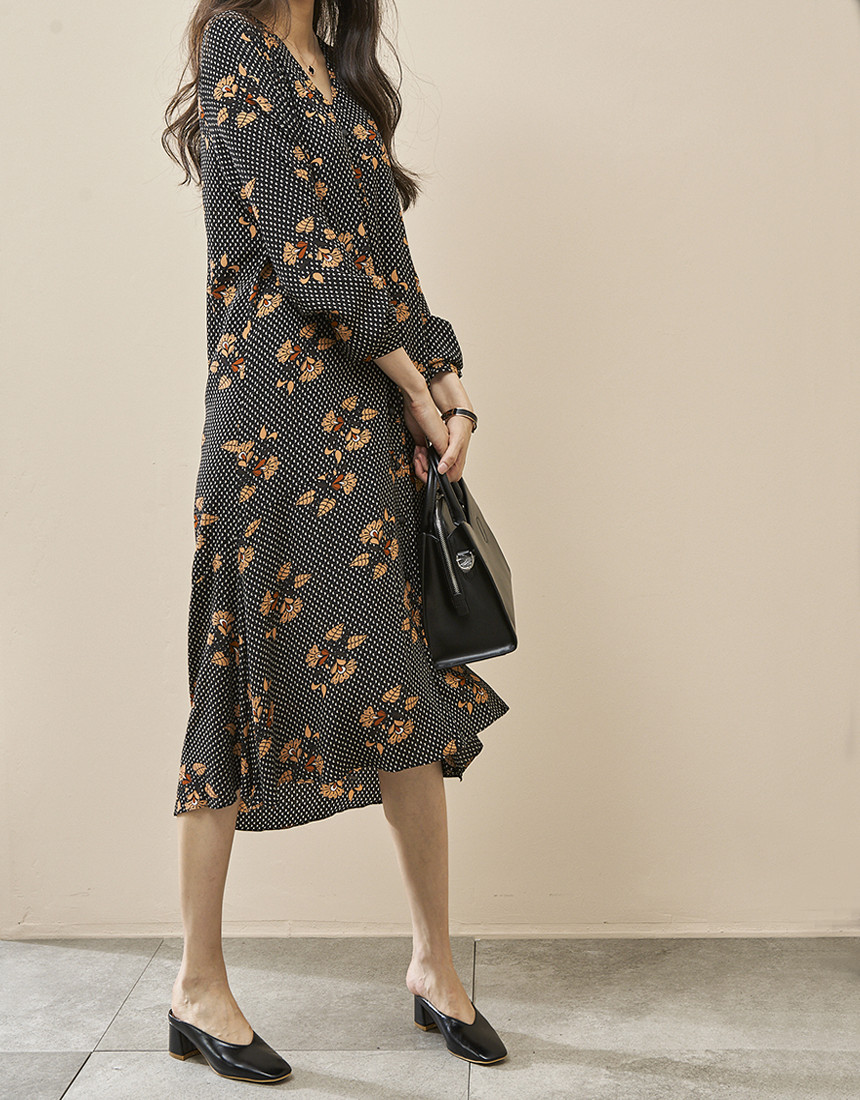 #브이넥 나염 패턴 로브 롱원피스