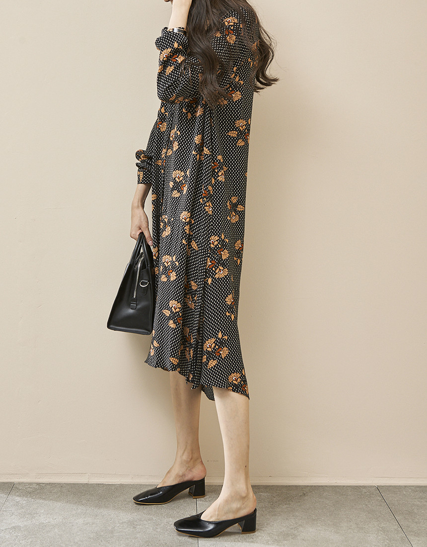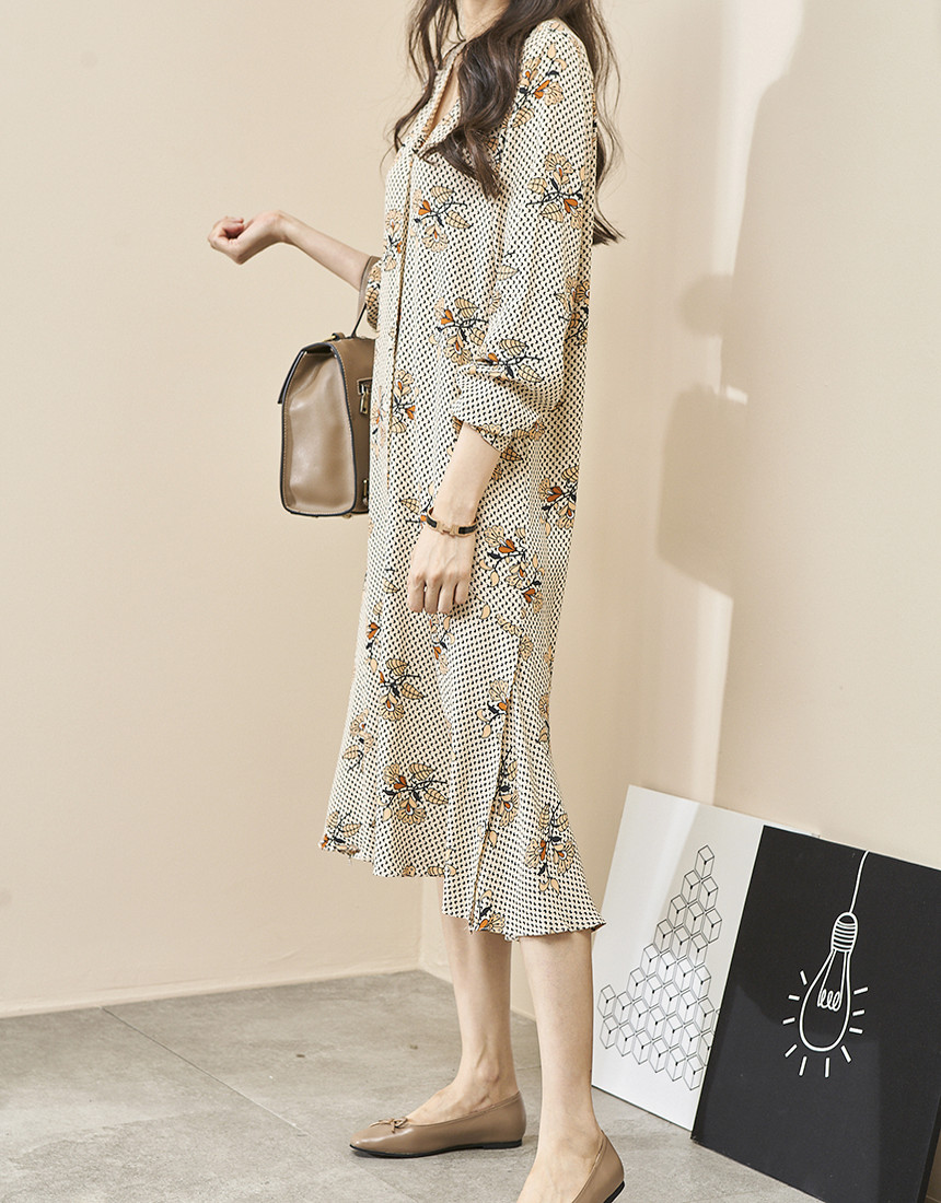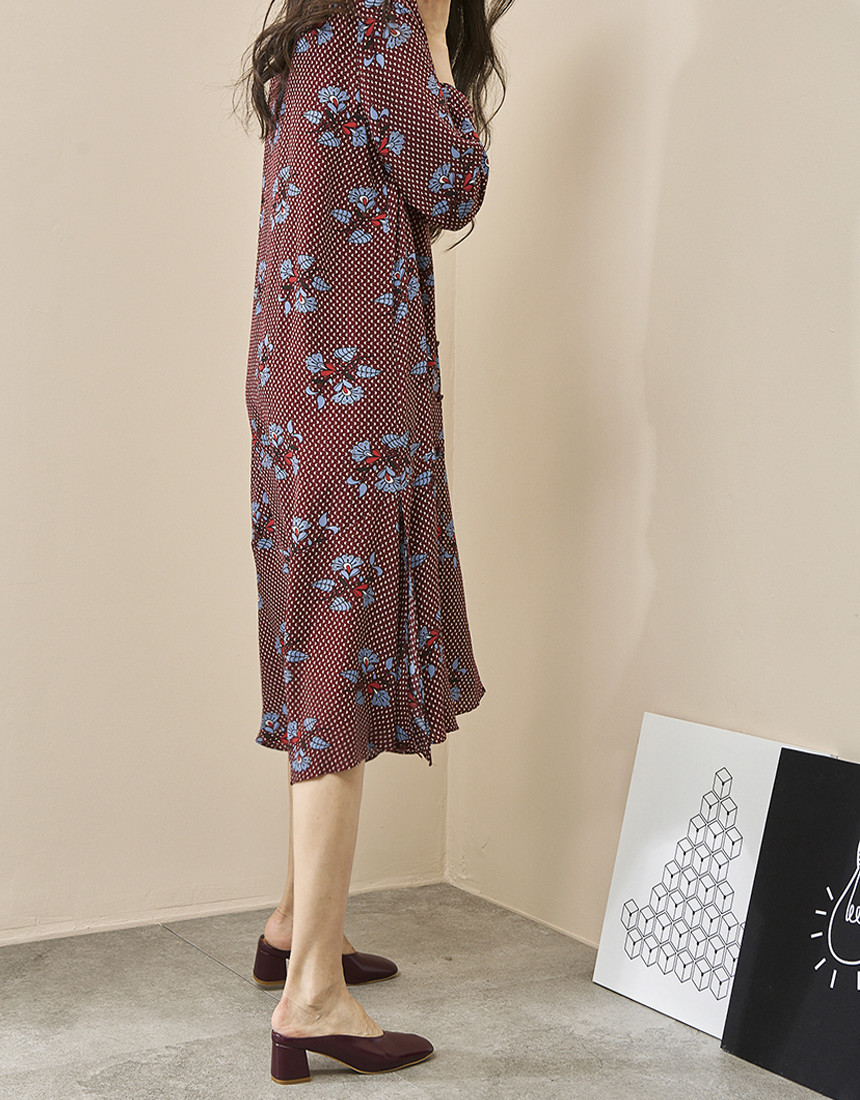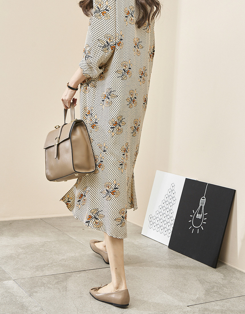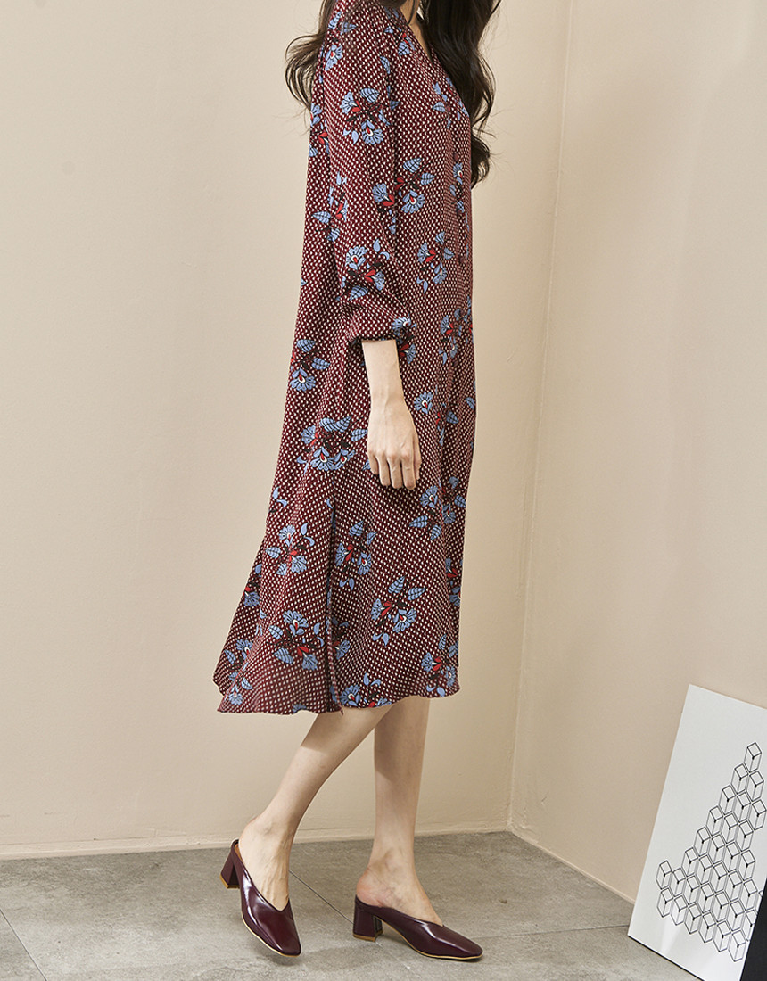 #브이넥 나염 패턴 로브 롱원피스