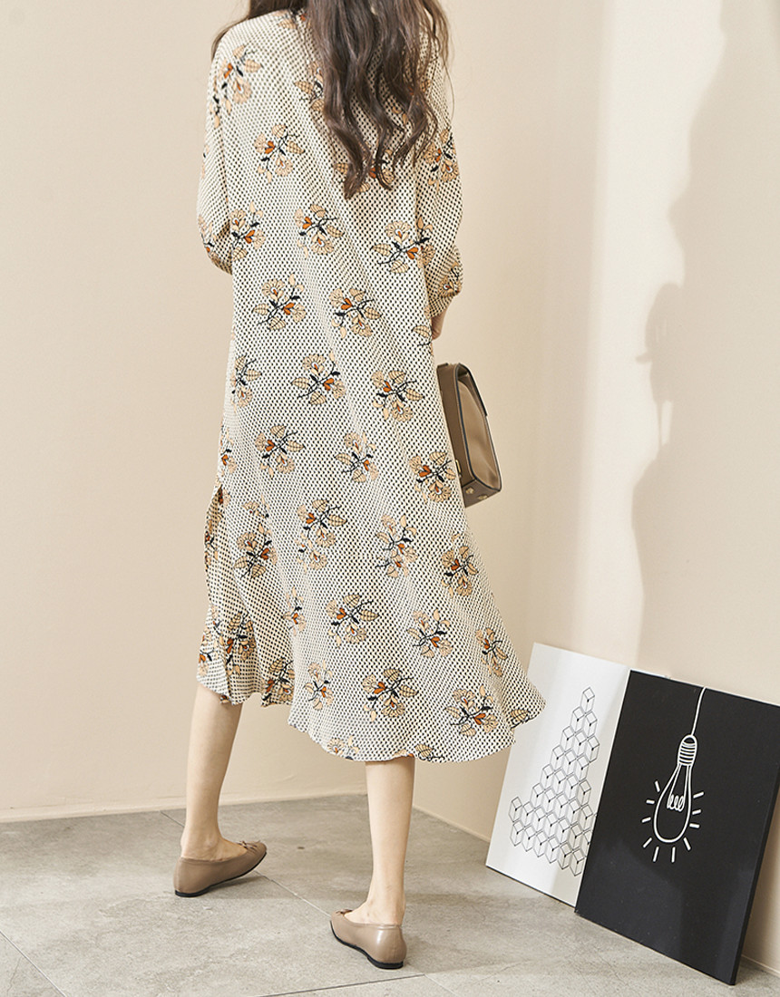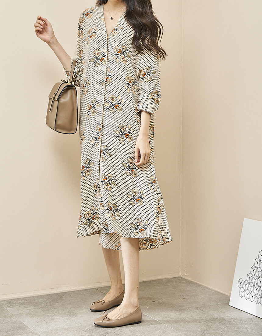 차르르 떨어지는 핏으로 여리여리해보이고 잔잔한 나염 패턴이 멋스러운 디자인이에요