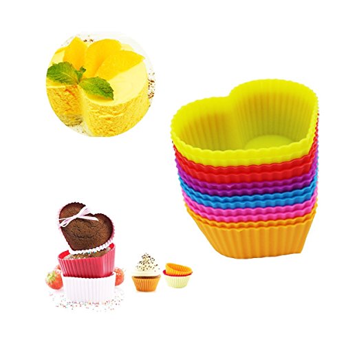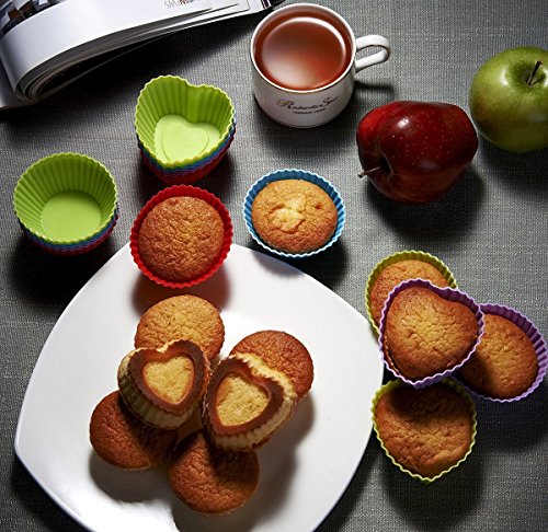 MUMUTIPS 48-Pack 7CM Reusable Silicone Cake Molds,(12 Rose + 12 Heart +12 Round +12 Star),Random Color