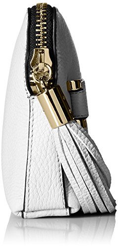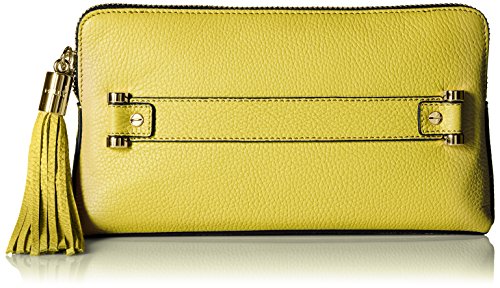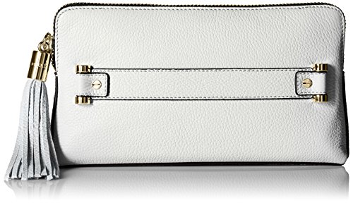 Leather clutch with tassel zipper pull and slide-through handle