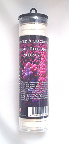 -. Binding : Misc. -. Brand : Crystal Clear Aquatics -. Color : magenta -. EAN : 0899740003088 -. Feature : Advanced aquaculture ceramic reef discs are great for zoanthids, soft corals and small stony coral colonies that require a large wide base for support / Made of ceramic material / Each disc is about 1-3/4-inch diameter by 1/4-inch thick with a small round depression on one side to aid in gluing / Ceramic reef discs require no curing and will not leach anything into your water / Comes with 20-piece per tube -. Label : TopDawg Pet Supply -. Manufacturer : TopDawg Pet Supply -. Model : 899740003088 -. MPN : 899740003088 -. PackageQuantity : 1 -. PartNumber : 899740003088 -. ProductGroup : Pet Products -. ProductTypeName : PET_SUPPLIES -. Publisher : TopDawg Pet Supply -. SKU : AAD00308 -. Studio : TopDawg Pet Supply -. Title : Crystal Clear Aquatics AAD00308 Ceramic Frag Disc Aquarium Decor, 20-Tube -. UPC : 899740003088