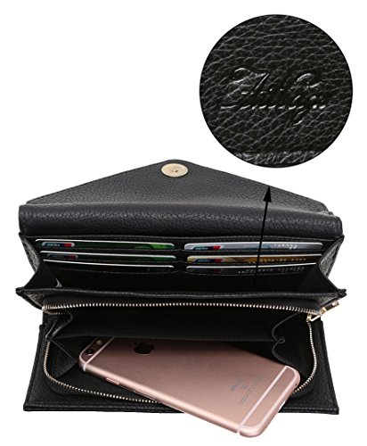 -. Feature : GUARANTEE - Aitbags quality guarantee, every detail of bags is carefully designed and checking and can be used for many years / MATERIAL - High quality synthetic leather, fabric lining and metal rivets / DIMENSION - 8.5"long x 1" Thickness x 4.5"wide / STRUCTURE - Magnetic buckle to open, 2 parallel compartments, 6 redit card case slots, 1 zipper bag open two interlayer porkets inside. and metal LOGO embossed / CAPACITY - This wallet is perfect for hold receipts, business cards, phone like iPhone 5, 5S, 5c 6, 6S, 6 plus, 6s plusand any phone that in a similar or smaller size, Perfect size for traveling or simply keeping in your purse