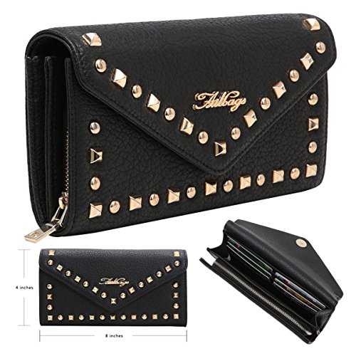 -. Title : Aitbags Womens Multi-purpose Envelope Leather Purse Clutch Wallet With Fashion Rivets Decoration