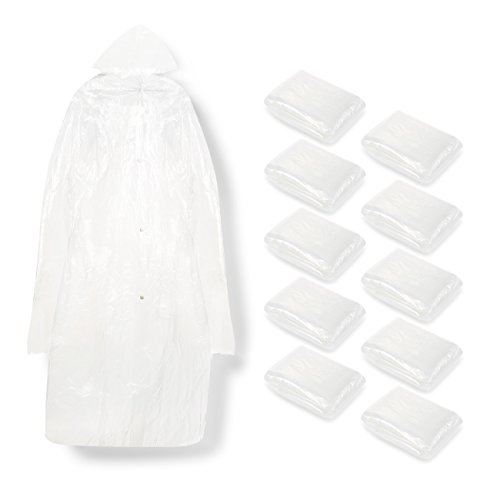 - 10 ADULT PONCHOS: Contains 10 Clear ponchos for adults; one size fits most adults