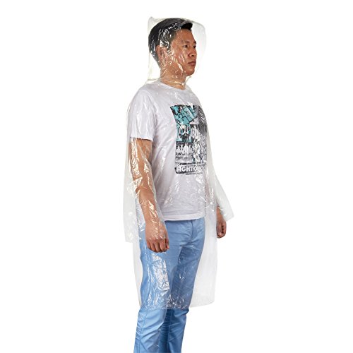 10 Count Disposable Adult Rain Ponchos with Hood - Emergency Poncho, Clear